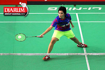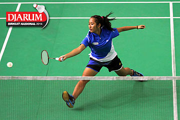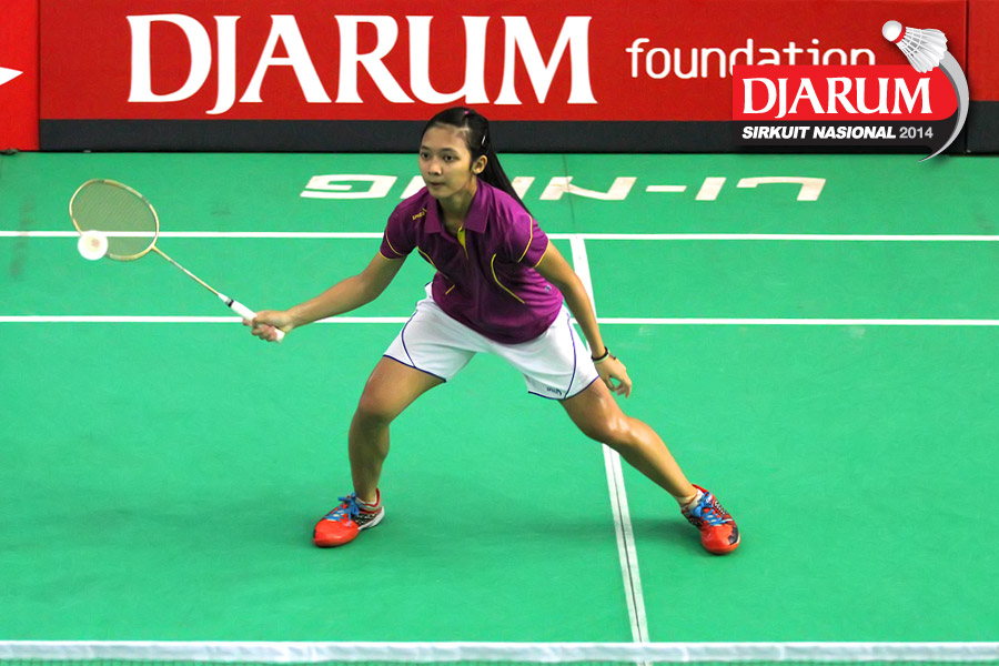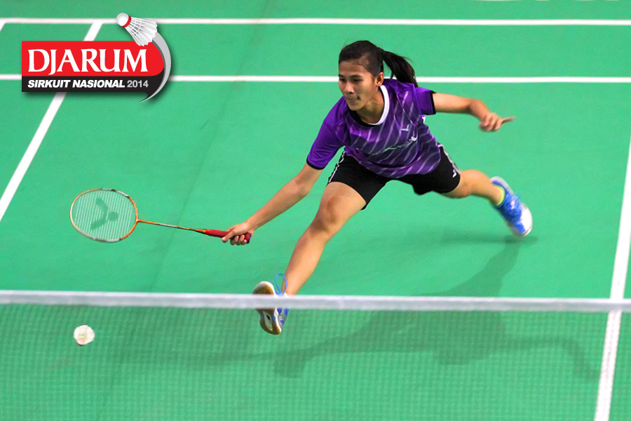 Priskila Siahaya (Exist) berusaha menggapai pengembalian dari Rifa Putri (PB Djarum)