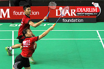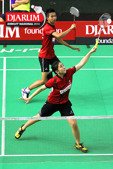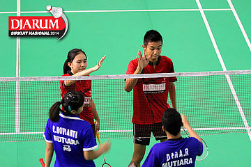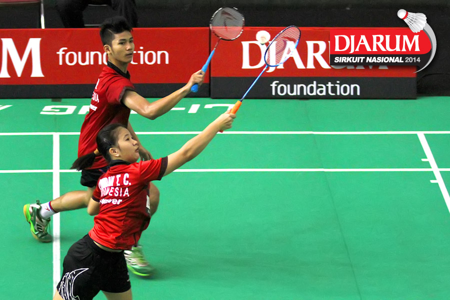 Ramadiansyah/Mychelle Christine (PB Djarum) menghadang pengembalian dari pasangan Ramadana/Rona Novianti (Exist)