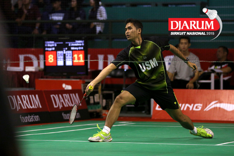 Bandar Sigit (USM) mengembalikan shuttlecock.