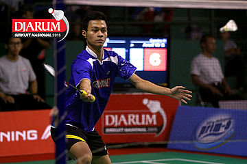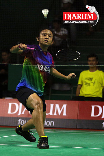 Krinsa Adi (Pelatnas) bersiap menyambar pengembalian.