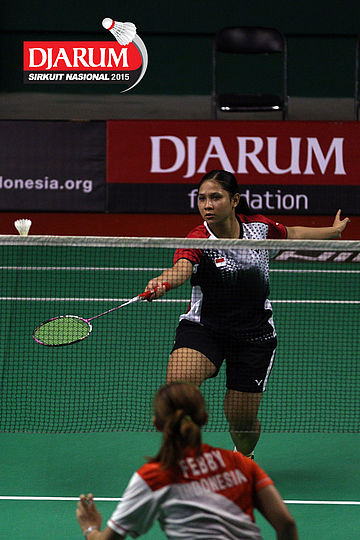 Afiat Yuris/Nadya Melati (Pertamina Fastron) menyambar pengembalian tanggung.