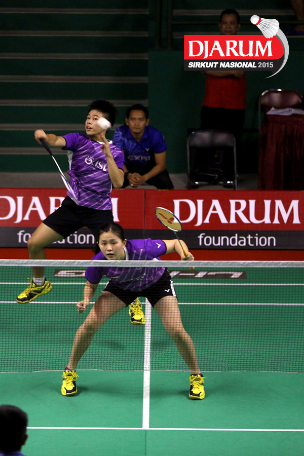 Dian Fitriani/Nadya Melati (Pertamina Fastron) saling berkoordinasi.