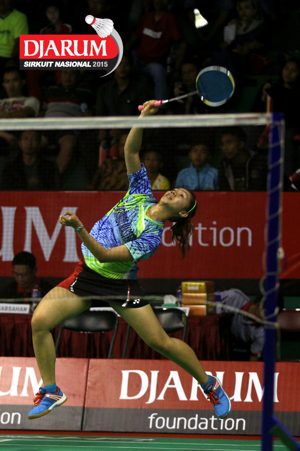 Febby Angguni (Tjakrindo Masters) mengembalikan shuttlecock.