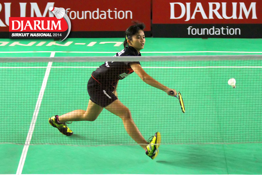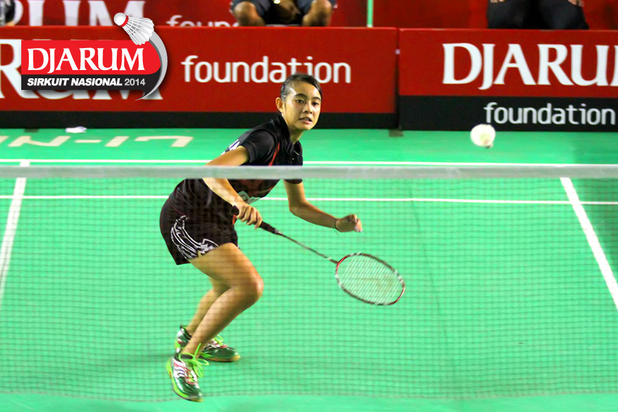 Agdevika Rochmadhani (PB Djarum) berhasil menghadang serangan yang dilepaskan Virny Putri (Jaya Raya)