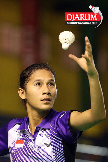 Priskila Siahaya (Pelatnas) melepaskan serve.