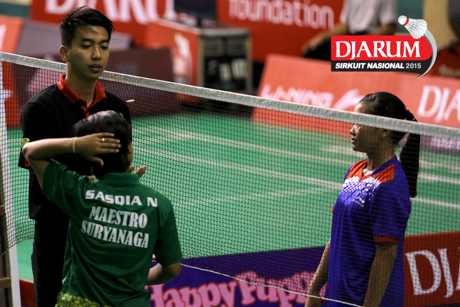 Salah satu Umpire saat menyerahan pergantian shuttlecock