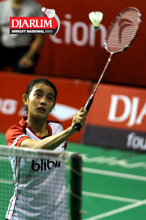 Silvi Wulandari (Djarum Kudus) mengembalikan shuttlecock