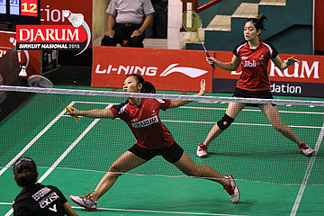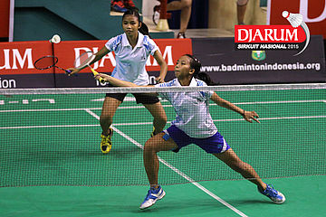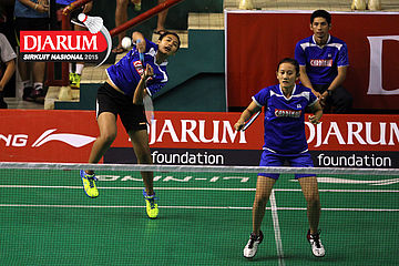 Ririn Amelia/Ristya Ayu (Djarum Kudus) mengembalikan shuttlecock