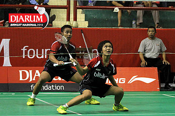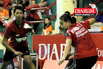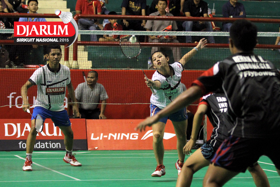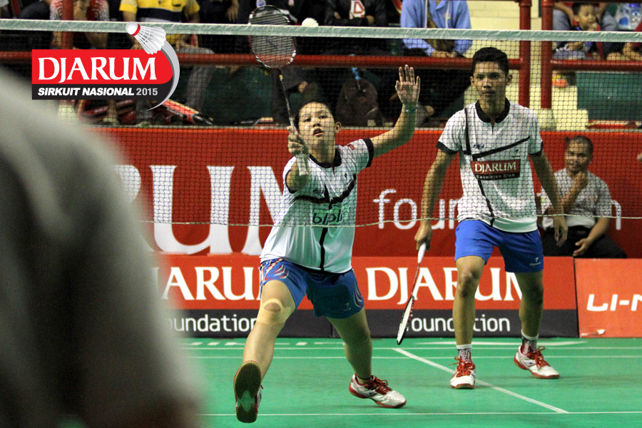 Galang Decky/Cynthia Shara (Djarum Kudus) bersiap menghadang serangan