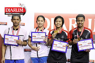 Feisal Wiranto/Ribka Sugiarto (Djarum Kudus) menyambut pengembalian