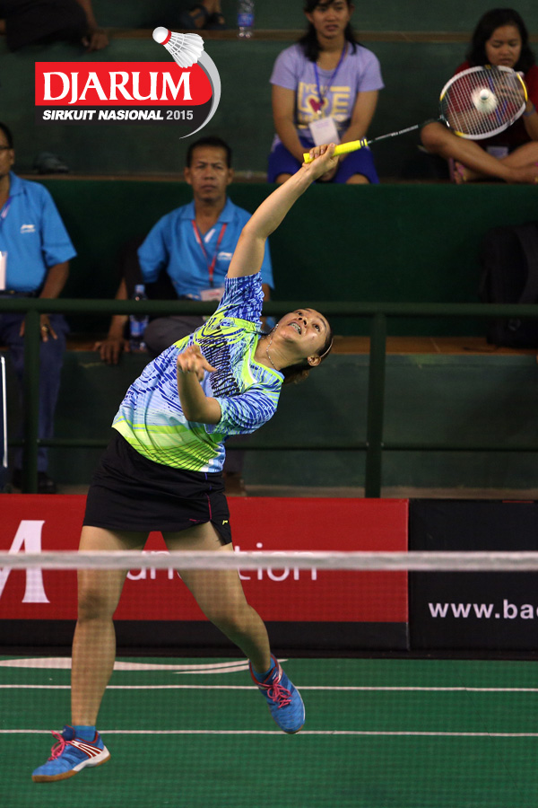 Febby Angguni (Tjakrindo Masters) melepaskan serangan.