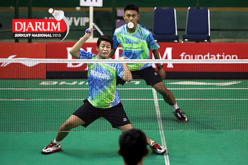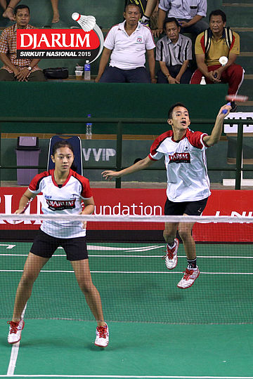 M. Febriansyah/Rofahadah SUpriadi (Djarum Kudus) mengembalikan shuttlecock.
