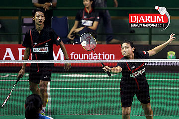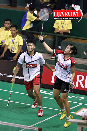 M. Febriansyah/Rofahadah SUpriadi (Djarum Kudus) bersiap menyambut pengembalian.