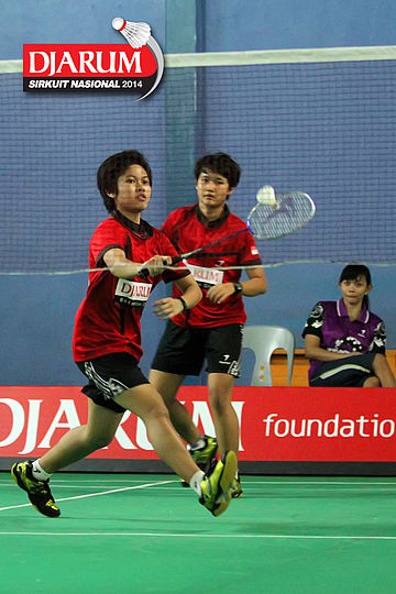 Karina Ria/Wulan Cahya (PB Djarum) bersiap menyambut pengembalian dari Ni Made Pranita/Sarah Christin (Pelatprov Bali/Pelatprov DKI Jakarta).