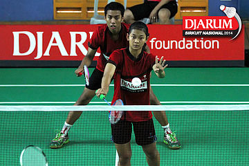 Vicky Rizky/Rofahadah Supriadi (PB Djarum) saling memberikan dukungan saat bertanding.