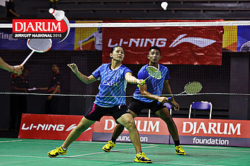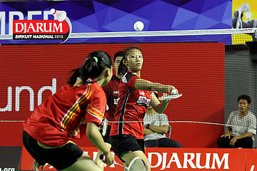 Akbar Gusti/Cynthia Shara (Djarum Kudus) menghadang serangan