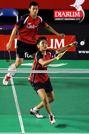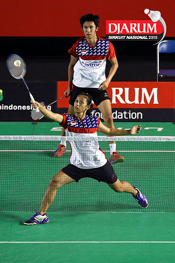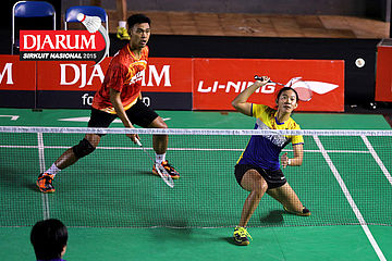 Yohanes Rendy/Dian Fitriani (Pertamina Fastron) mengembalikan shuttlecock