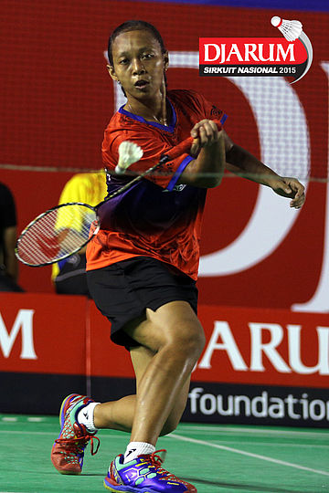 Winda Puji (Fifa BC) mengembalikan shuttlecock