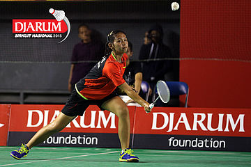 Made Deya Surya Saraswati (Pelatprov Bali) mengembalikan shuttlecock