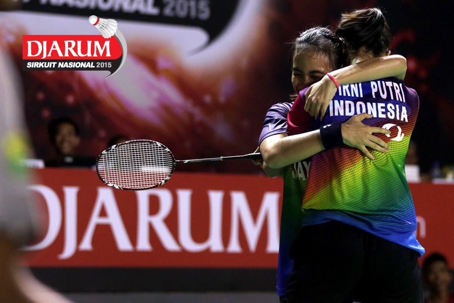 Syifa Fauziah/Virny Putri (Jaya Raya) berpelukan usai bertanding