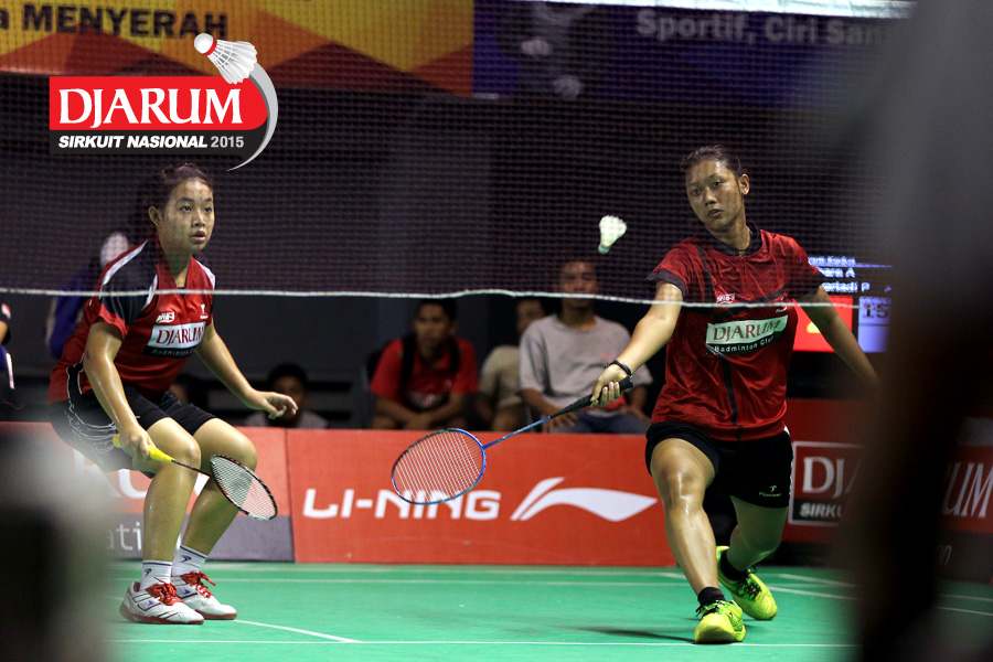 Cynthia Shara/Rofahadah Supriadi (Djarum Kudus) menyambut pengembalian
