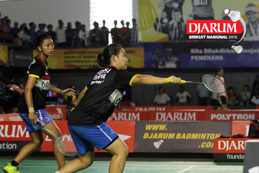 Syifa Fauziah/Virny Putri (Jaya Raya) menghadang serangan