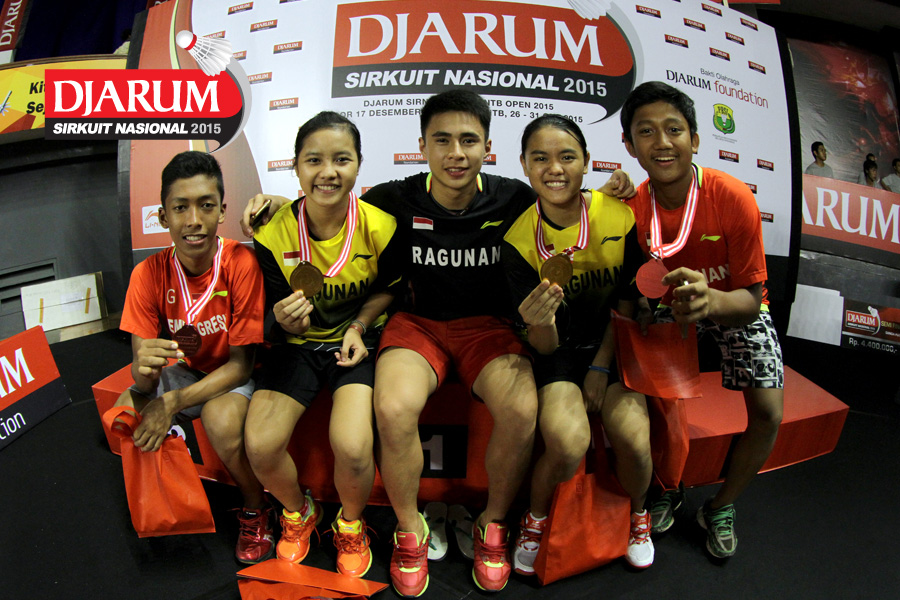 Lima pebulutangkis Ragunan peraih medali berfoto bersama