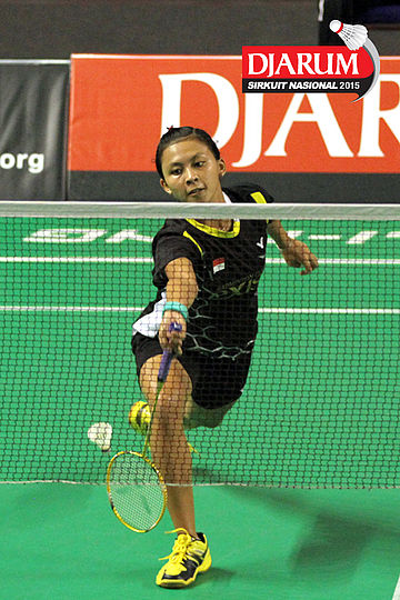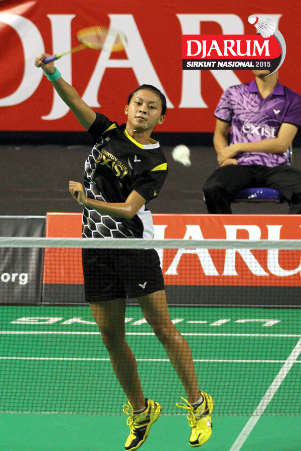 Novita Auliani (SKO Ragunan) mengembalikan shuttlecock.