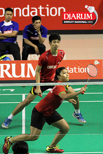 Afiat Yuris/Nadya Melati (Pertamina Fastron) bersiap menyambut pengembalian.