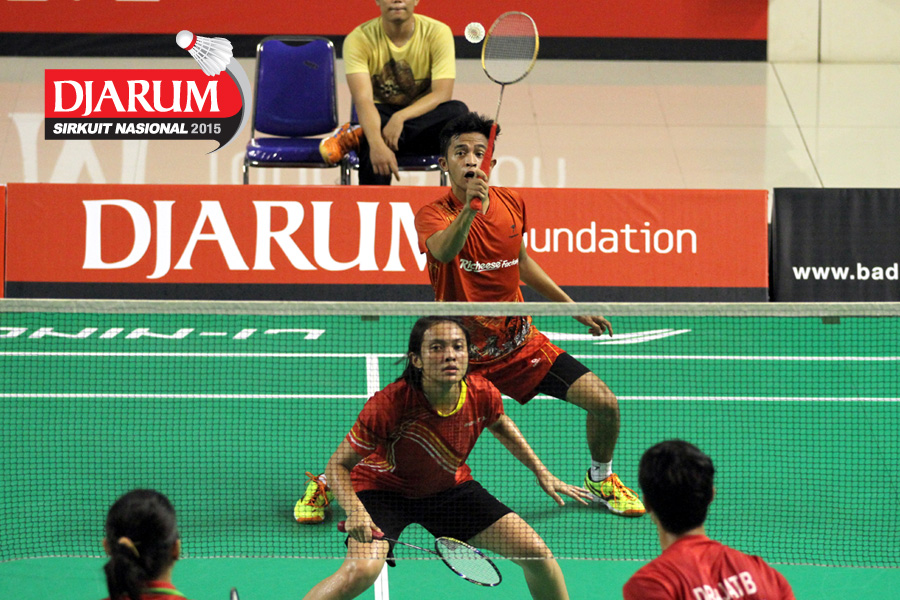 Ikhsan Adam/Sri Wulansari (Guna Dharma/Jaya Raya) menghadang serangan.