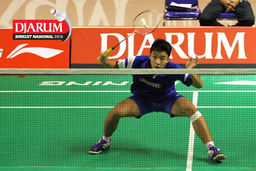 Gatjra Piliang (Exist) mengembalikan shuttlecock.