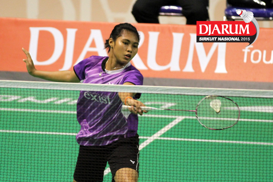 Vehrenica Debora (Tangkas) mengembalikan shuttlecock.