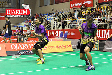 Fernando Kurniawan/Fran Kurniawan (Djarum Kudus) bersiap menyambut pengembalian.