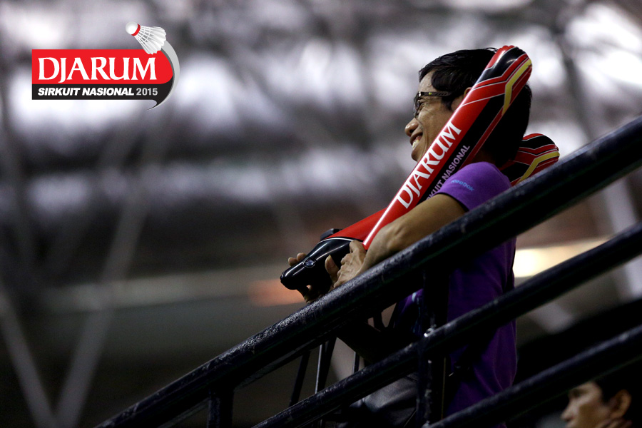 Salah satu pengunjung antusias menyaksikan final Djarum Sirkuit Nasional Li-Ning Yogyakarta Open 2015.