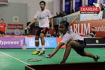 Yoggi Pamungkas/Sang Ayu Putu Kharisma Maharani (Djarum Kudus) Mengembalikan Shuttlecock