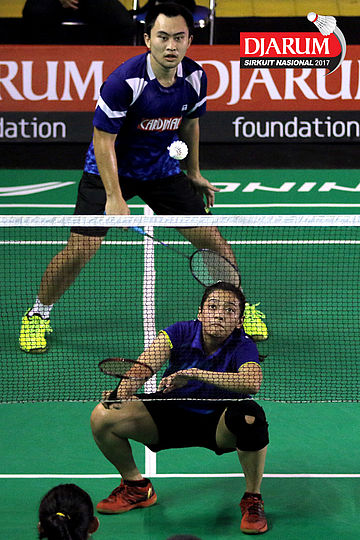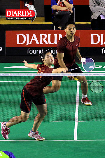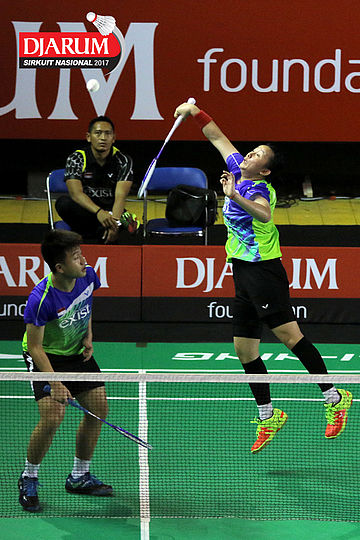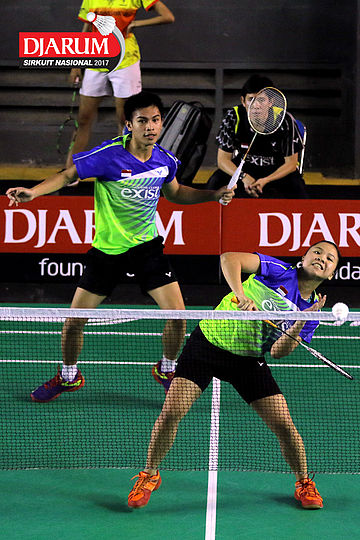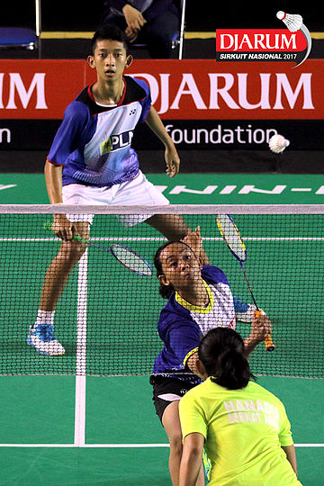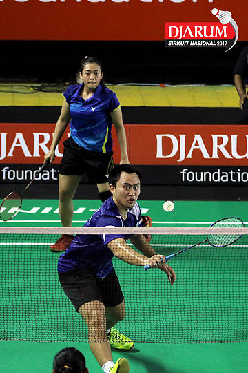 Aldi Efendi/Dianita Saraswati (SGS PLN/Mutiara Cardinal) Mengembalikan Shuttlecock