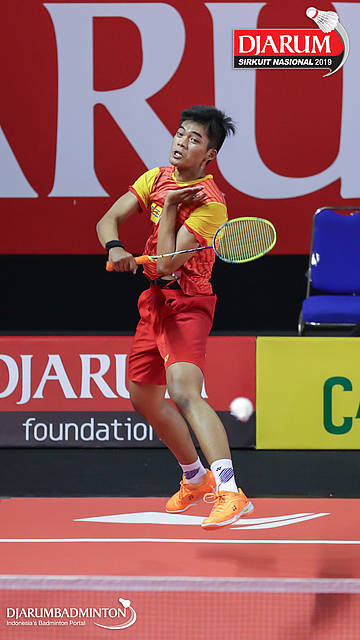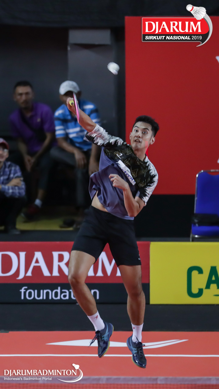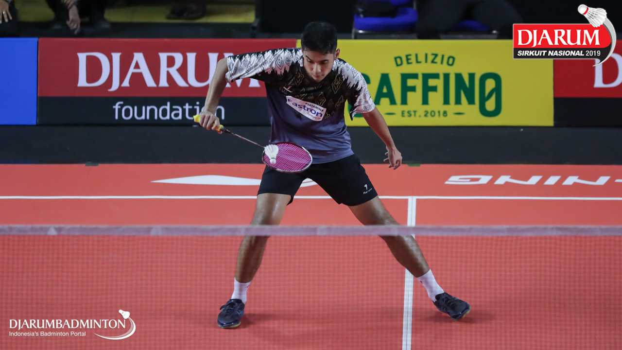 Riyanto Subagja (Pertamina Fastron, Jakut) bersiap menyambut shuttlecock