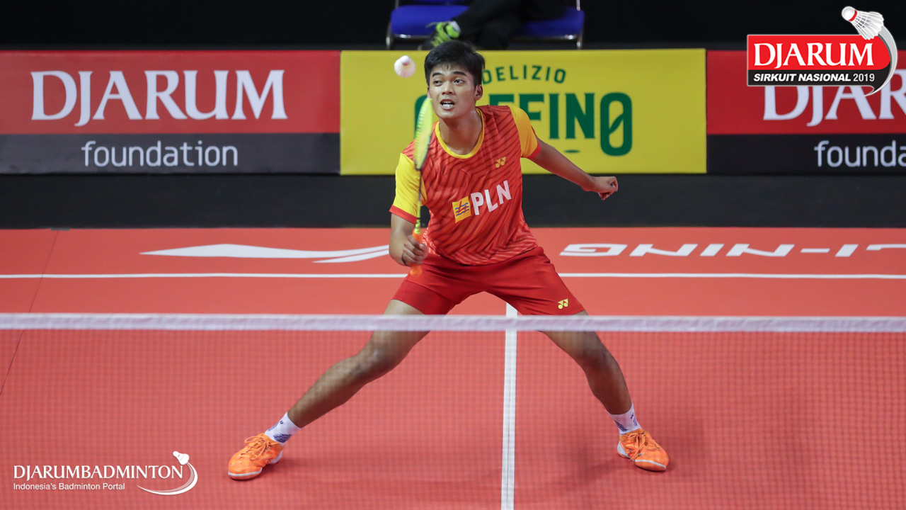 Waldie Riksa Alfarisi (Sangkuriang Graha Sarana PLN Bandung) mengembalikan shuttlecock