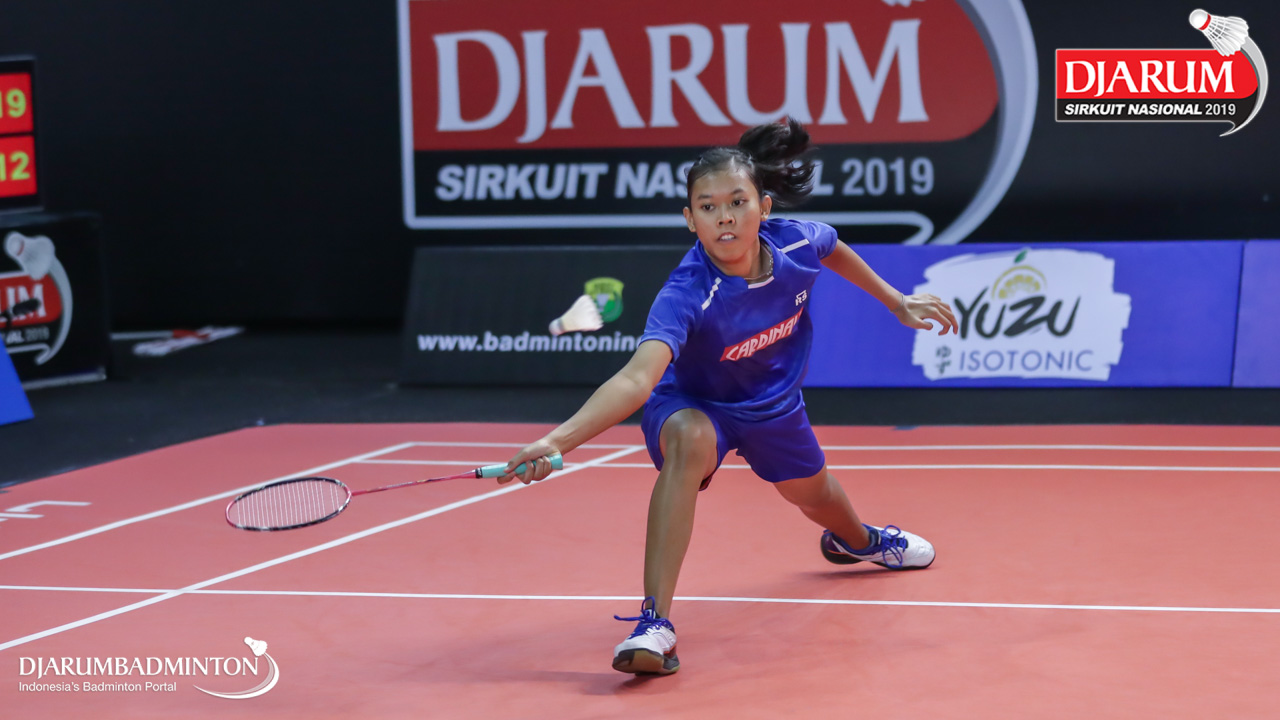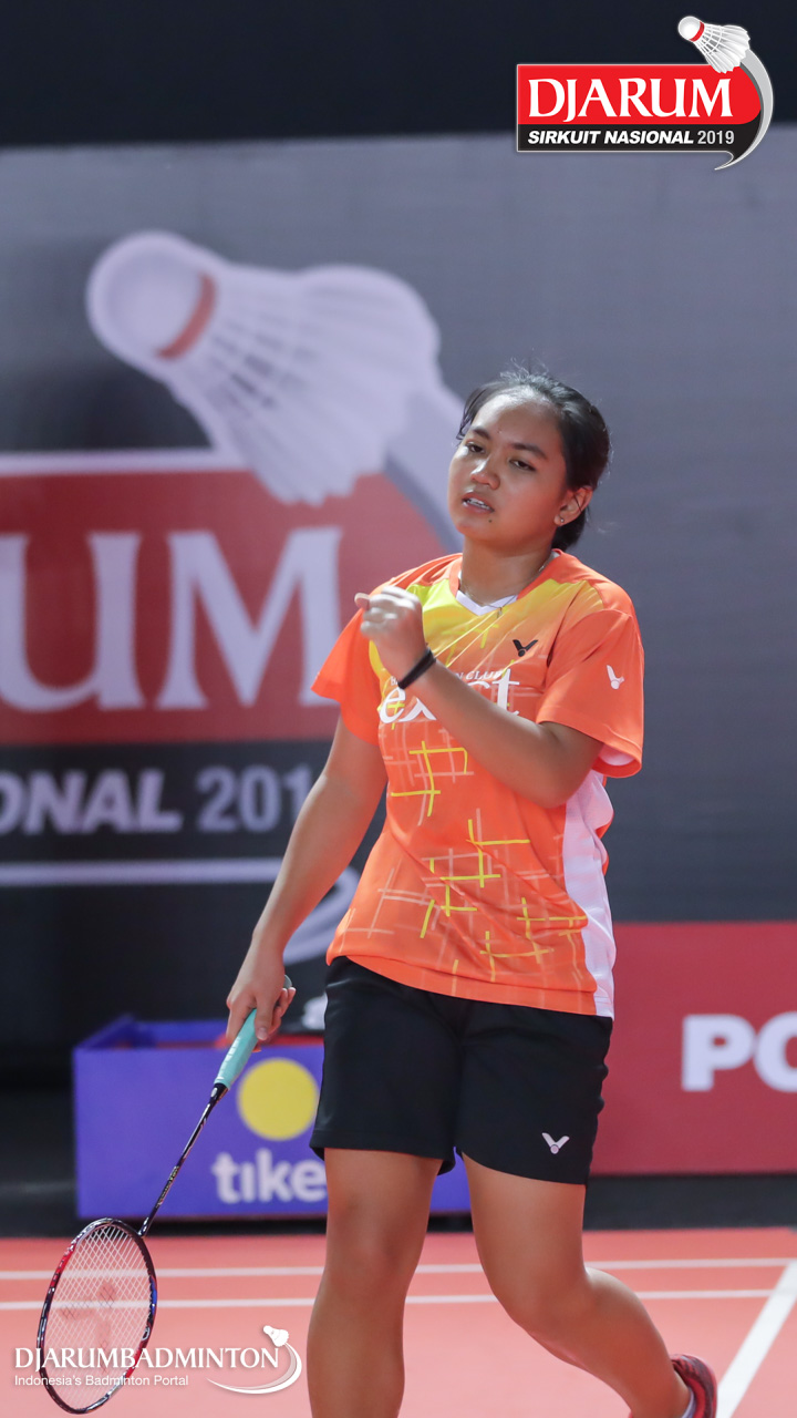 Saifi Rizka Nurhidayah (Mutiara Cardinal, Bandung) bersiap menyambut shuttlecock