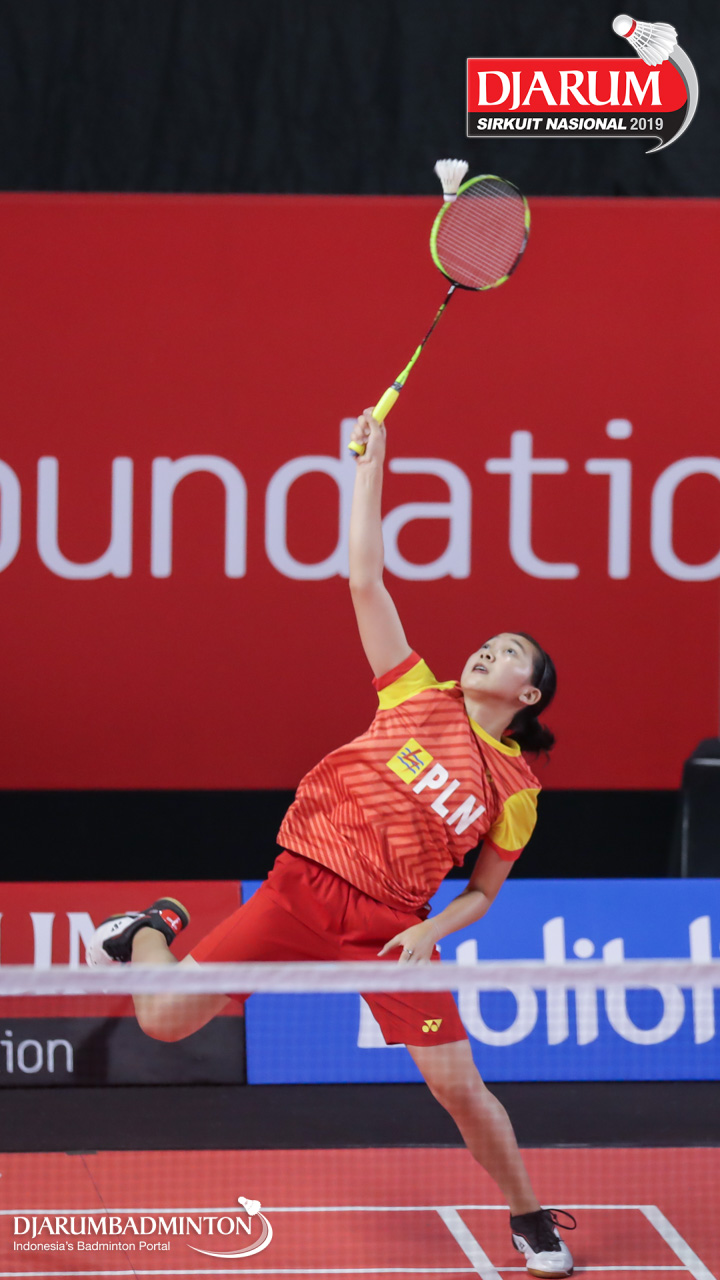 Elok Machsunnah (Pratama Badminton Academy, Sby) mengembalikan shuttlecock