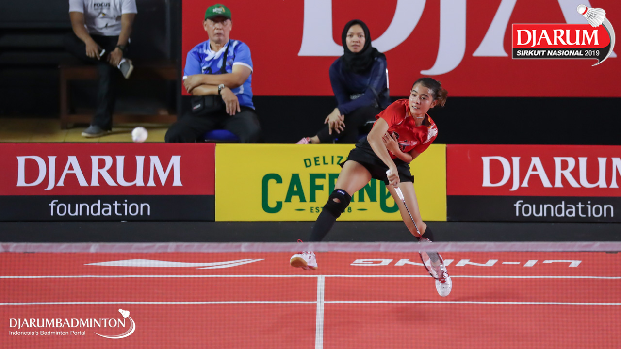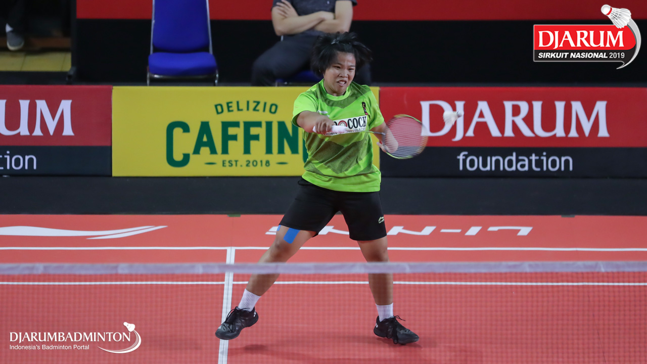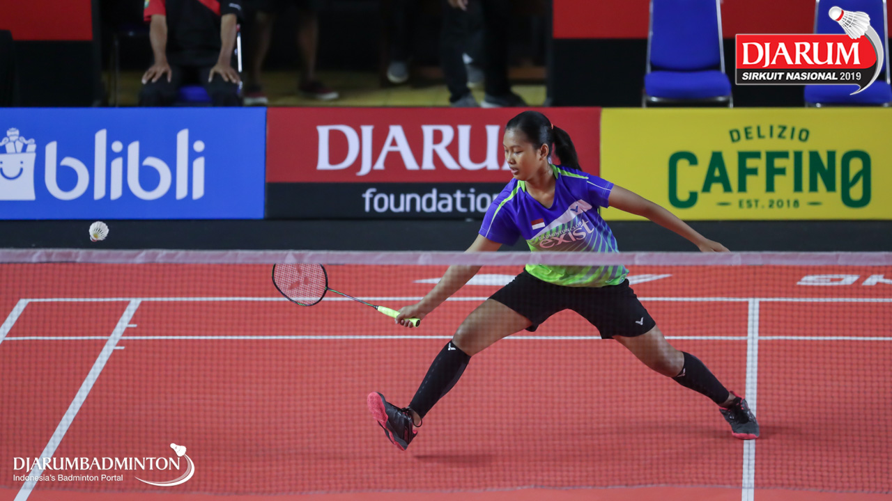 Elok Machsunnah (Pratama Badminton Academy, Sby) menggapai pengembalian