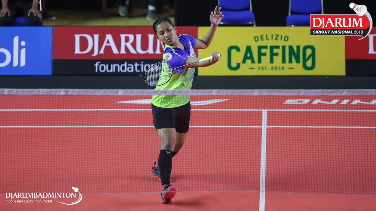 Tiara Ayuni Wulandari (Exist Badminton Club) menyambut pengembalian