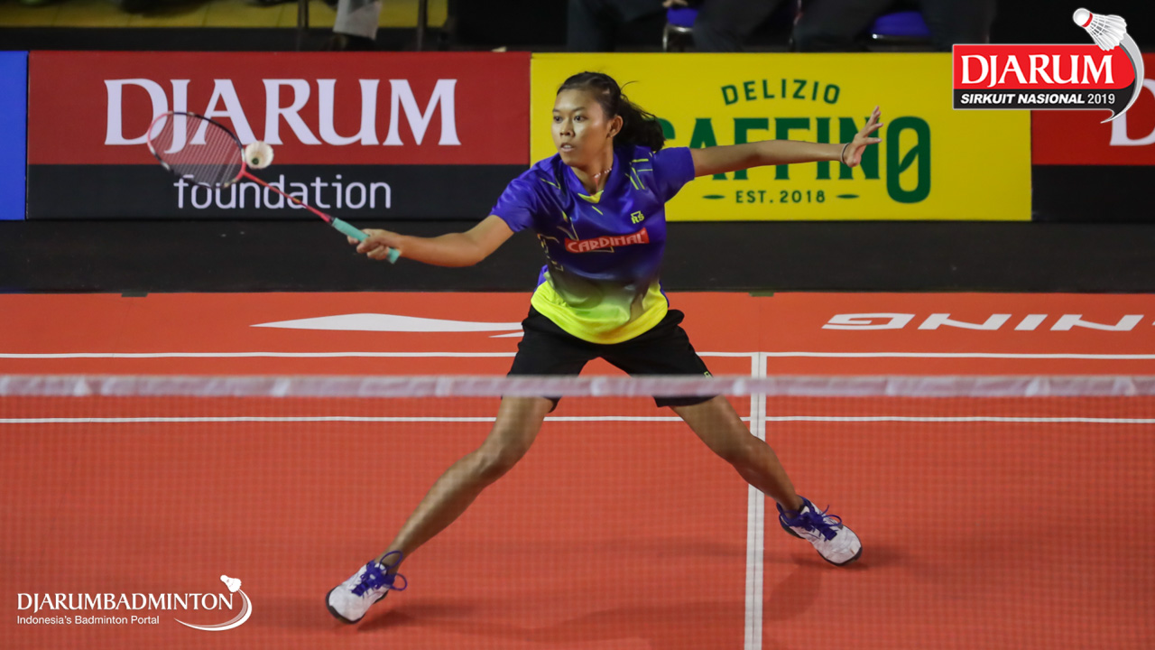 Saifi Rizka Nurhidayah (Mutiara Cardinal, Bandung) bersiap menyambut shuttlecock