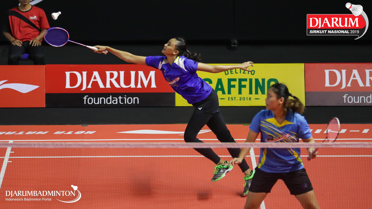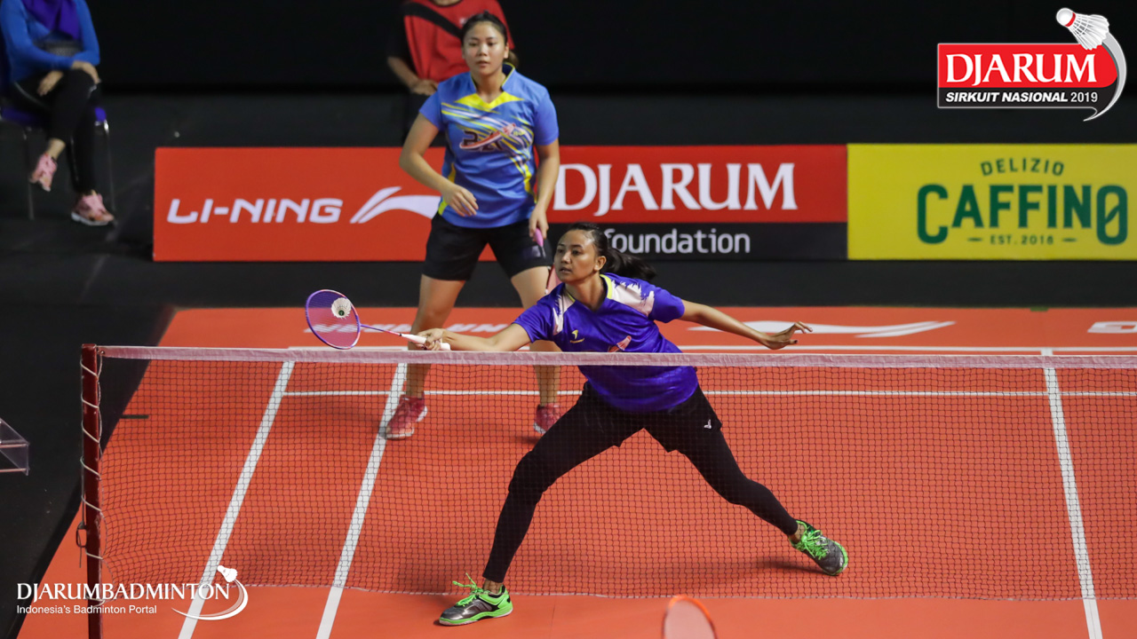 Brigita Marcelia Rumambi+Meirisa Cindy Sahputri (Berkat Abadi, Banjar) menyambut shuttlecock