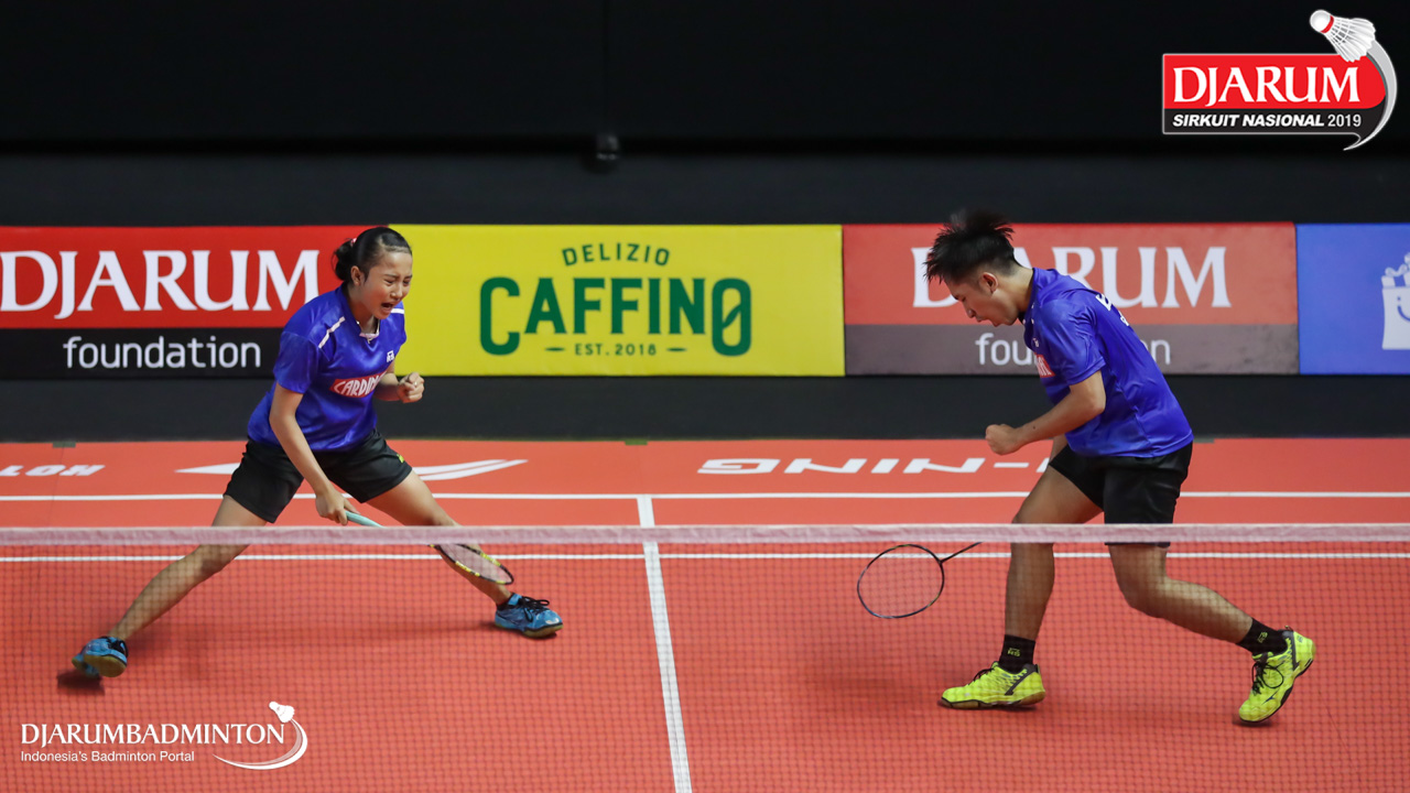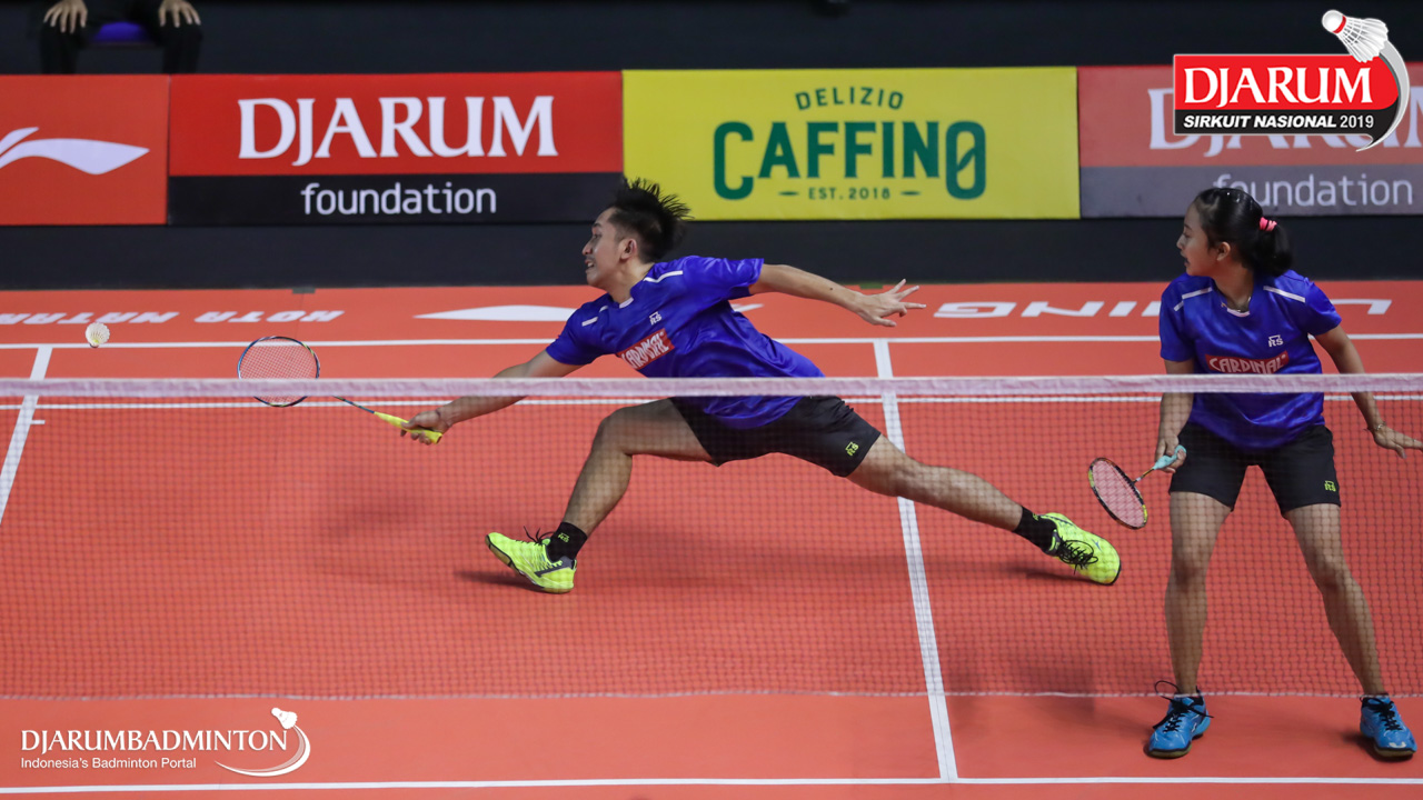 Ragil Ricky Surya Hanaffi+Salsabila Dewanti (Mutiara Cardinal, Bandung) mengembalikan shuttlecock