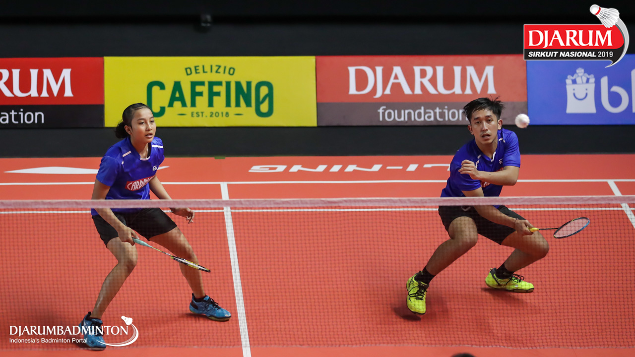 Alan Darmasaputra Kristanto+Sang Ayu Putu Kharisma Maharani (PB Djarum, Kudus) bersiap menyambut shuttlecock