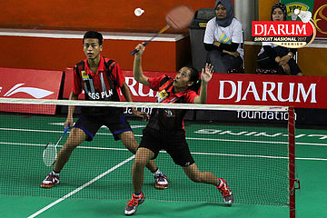 Bryan Sydney/Bella Irianti (Tangkas Intiland) Mengembalikan Shuttlecock
