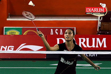Aisha Galuh (Djarum Kudus) Mengembalikan Shuttlecock