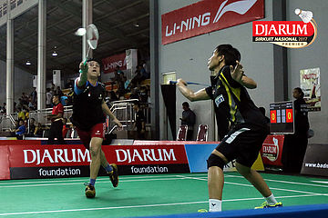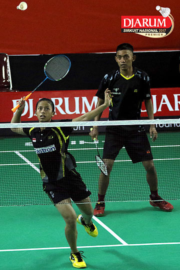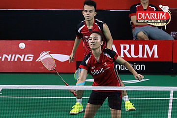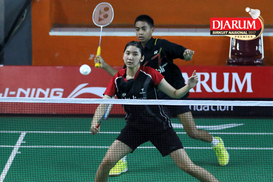 Rahmat Hidayat/Shelandry Vyola (Djarum Kudus) Mengembalikan Shuttlecock