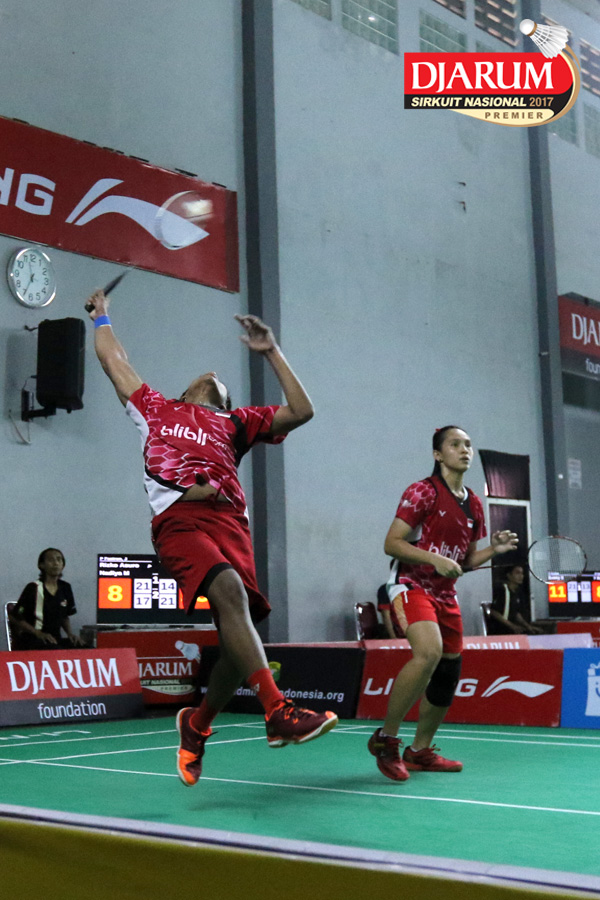 Rian Swastedian/Masita Mahmudin (Jaya Raya) Mengembalikan Shuttlecock